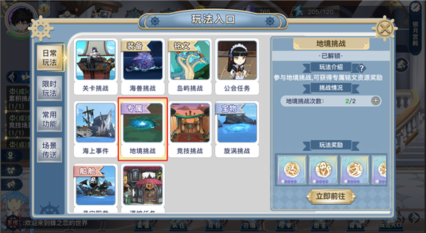 在【玩法入口】界面里,点【地境挑战】按钮就能看到详细信息。系统每天早上5点会刷新免费的挑战次数,所以记得每天把次数用完就行。