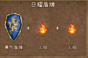 最后来个硬货,日耀盾牌。这玩意儿合成起来比较麻烦,但效果是真顶。大家看下面这两张图,是它的组件和最终成品。