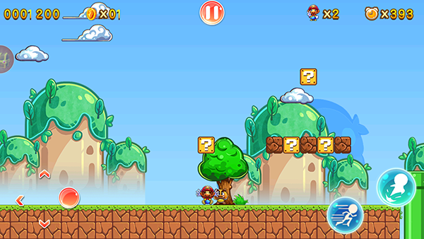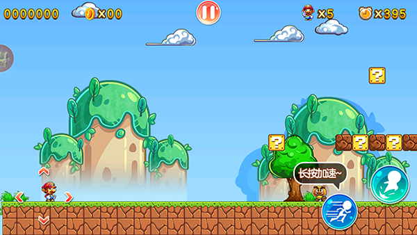 通过跳跃撞击场景内的问号方块,可以获取积分或道具。其中,蘑菇道具能使角色体型变大,而获得鲜花道具后角色将拥有射击能力。