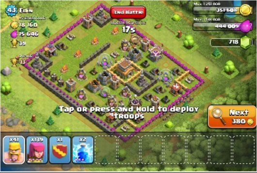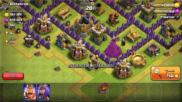 打钱可以说是这游戏里最快乐的事了,因为游戏里总有很多资源丰富的“鱼”,而且经常能碰到那种采集器都满了的“死鱼”。所以我给新手们的建议是,造兵就只造哥布林、野蛮人和弓箭手,比例大概是2:1:1。哥布林的特点就是奔着资源去,带点弓箭手和野蛮人是帮它清清边。我们打劫就只抢那些放在外围的采集器。每次搜到对手,先看左上角的资源量,再看他的采集器是不是鼓鼓的。如果感觉能打掉50%的建筑,那就尽量打到50%,这样既能拿到星,又能抢到资源,一举两得。当然,要是打不到50%也别灰心,资源到手就行。