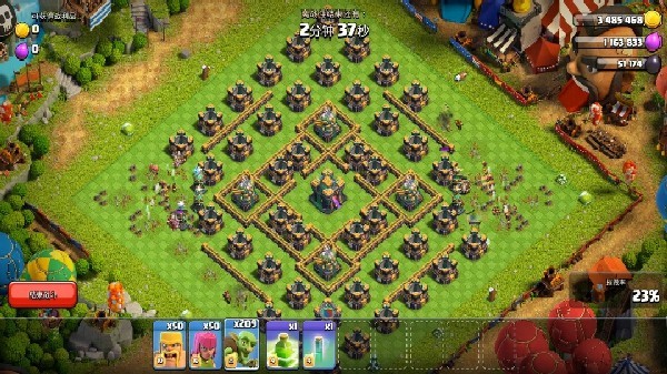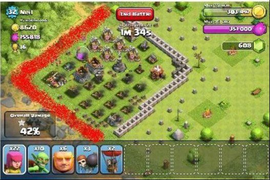 新手村庄通常会遇到比你高一两级大本营的玩家来进攻。在兵种等级的绝对压制下,再精妙的阵型也没什么用。我们接下来要聊的是,怎么通过布阵来防住同等级玩家的进攻,尽可能保住你的资源。
