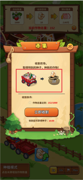 1、每次收割作物会给10个种子。