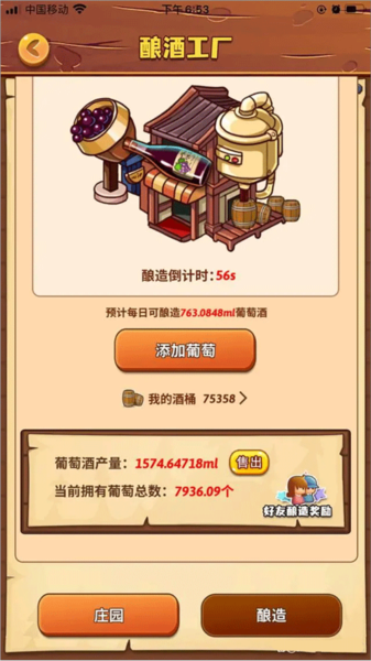 补充一下:酒桶这个东西,一开始会送80000个,从你开始酿造葡萄的那一刻起就在消耗。这个没什么好说的,用完了就补充,每天还能免费看三个广告来补充300个酒桶。