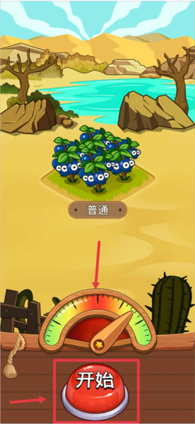 3、等探索到作物之后,需要抓捕它才能拿到。当下方的指针移动到红色区域时,快速点击“开始”按钮就行。