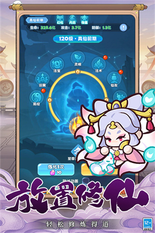 2、放置性挂机玩法,角色会自动战斗,挂机来获得资源,轻松修成仙;