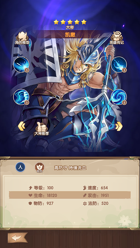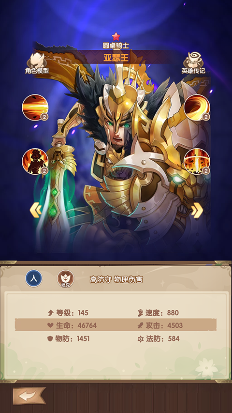 3.人物传记:亚瑟王,金发碧眼的帅哥,骑士精神的代表。人设就是那种完美的白马王子,正直、善良、有礼貌,但又不是个憨憨,自己打仗也很有套路。反正就是那种女性玩家会很喜欢的类型。
