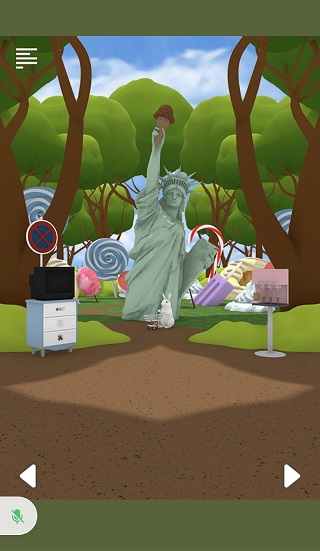 接下来综合几个线索:大象图垃圾箱上的图案,自由女神像图左边电视机上的图案,白马图甜甜圈上方的图案,还有糖果屋图右边的图案。用这个顺序去开糖果屋图右下方的箱子,顺序看下面这张截图就明白了。
