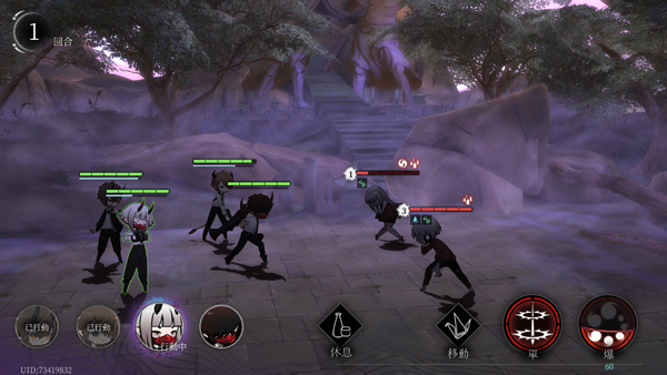 4、战斗系统是2D回合制,加了个叫【鬼神武装】的创新玩意儿。打架的时候得看准时机,用不同属性的“律相”技能来安排队伍站位。队员之间还能打出连携攻击,技能组合也挺多的,自己研究怎么配招,能让刷怪的效率高不少。