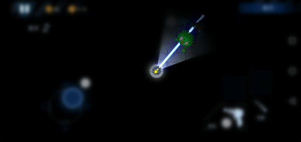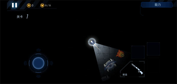 6、你就是在一个固定的炮台上,通过有限的视野射击周围靠近的怪物。游戏里黑漆漆的,能看见的就只有灯光照亮的一小块地方。