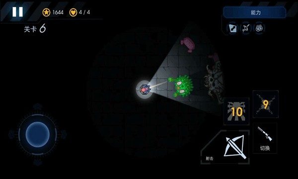 1、你不能移动,得站在原地,专心在黑暗里跟怪物火拼。