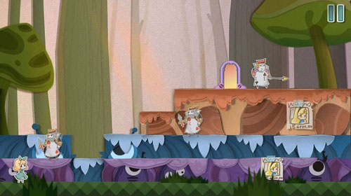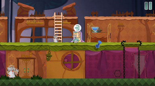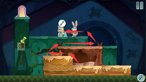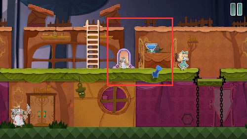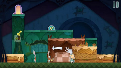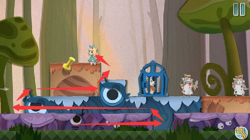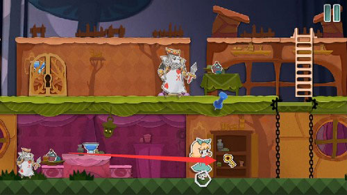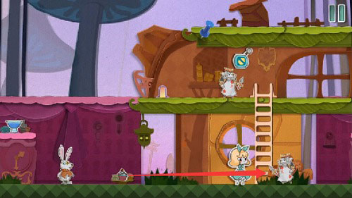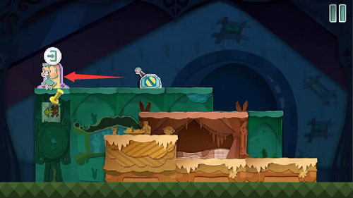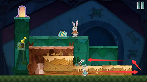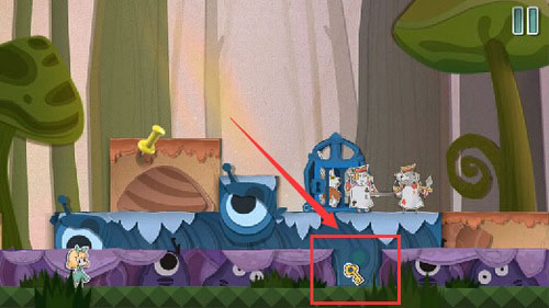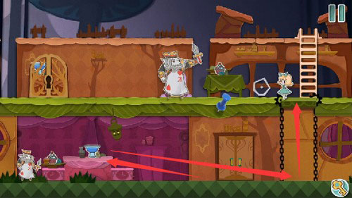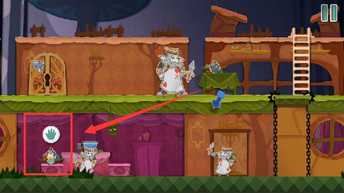 8、等扑克兵走到右边的时候,把蓝色方块往左一拖,就能把它关起来。然后你就可以下来用钥匙开门,救出老鼠,顺利过关。