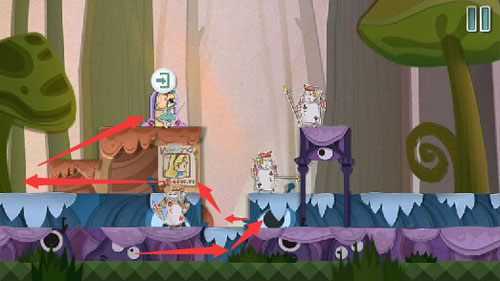 9、现在可以轻松把这个小扑克兵赶走了,然后进入传送门,这关就搞定了。