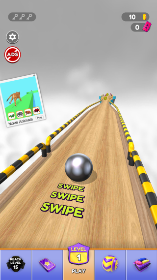 1、点击开始游戏,滑动屏幕去控制好球球前进左右移动。