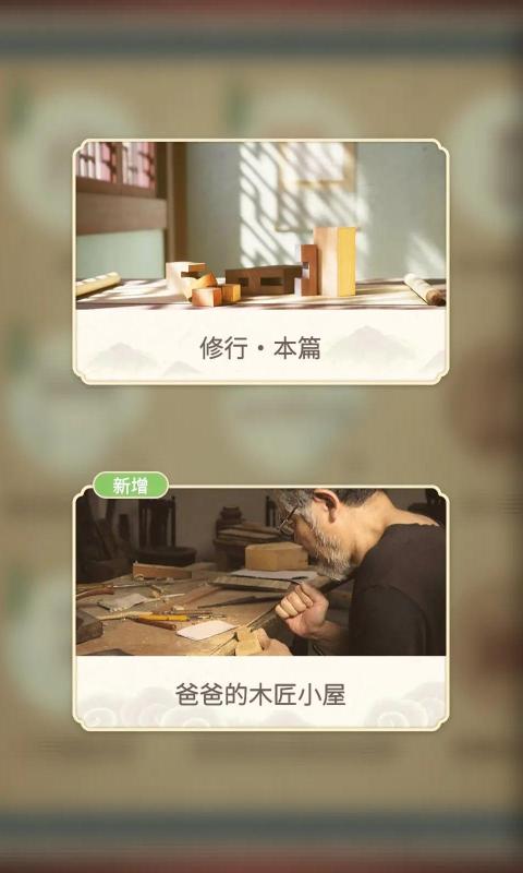 匠木手游让你重回历史古迹,游戏内提供多款木头样式需要你不断的精心雕刻去还原木制品。游戏会根据你的能力不断的提升难度,去收集每一款自己打造的木制品看储藏的时候会有满满的成就感,中国传统艺术需要不断的发扬流传。
