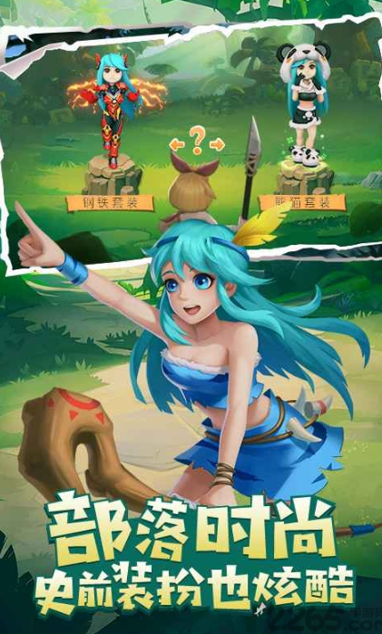 1、怀旧激萌的游戏画风,带你进入史前的石器部落,拿起石斧、捕获骑宠和野兽去战斗。