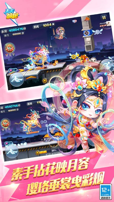- 天问星驰探幽玄,九歌临世舞翩跹!驾云煌煌破云岫,神兽引路逐日行!全新角色、宠物、坐骑等登场,共赴酷跑竞锋芒;