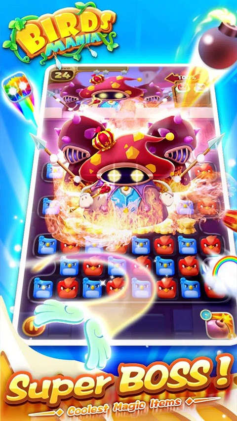 5、- 匹配4个或更多的道具,解决愤怒的小鸟!
