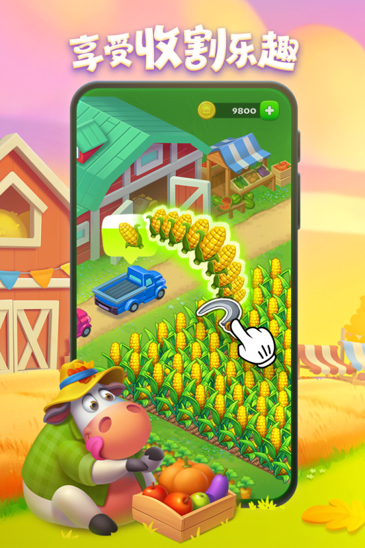 1、种植作物并收获,用于制作食物和商品,通过出售给居民或完成订单任务赚取金币与经验值。