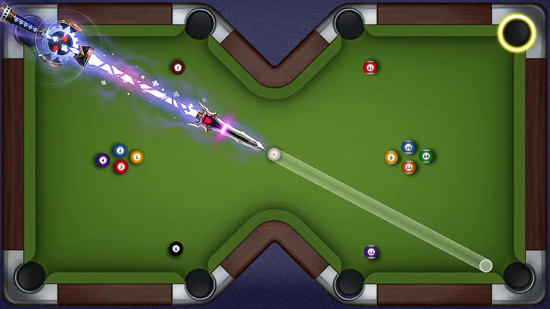 2、还原现实桌球玩法-8球与斯诺克,简单流行的操作方式,绚丽的动画特效。