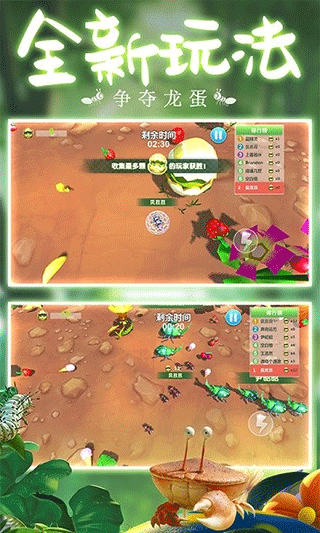 在此模式下,龙蛋将在场景中的任意位置刷新。获得最多龙蛋的玩家将赢得最终胜利,伤害并消灭敌人的蚂蚁,但你可以更快地收集龙蛋并赢得这场史诗般的战斗。