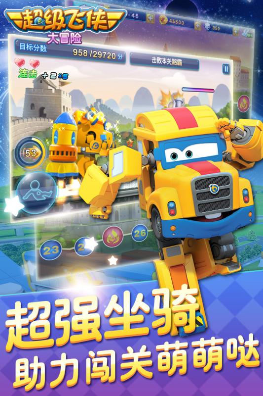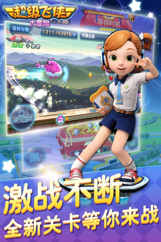 官方授权,动画情节以经典形式再现,你可以与超级飞行侠一起享受世界,带你回到记忆中的冒险世界。简单实用的技巧,华丽震撼的效果!全屏特效,无限奔跑,激战,体验清新节奏!创新的boss模式为玩家带来前所未有的新鲜体验,超级帅气的坐骑,超级可爱的宠物和超级装备,创造无限的可能性,突破最强的极限!