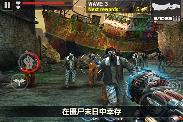 4、合理使用掩体躲避尸潮,注意四周刷新点,防止被包围陷入绝境。