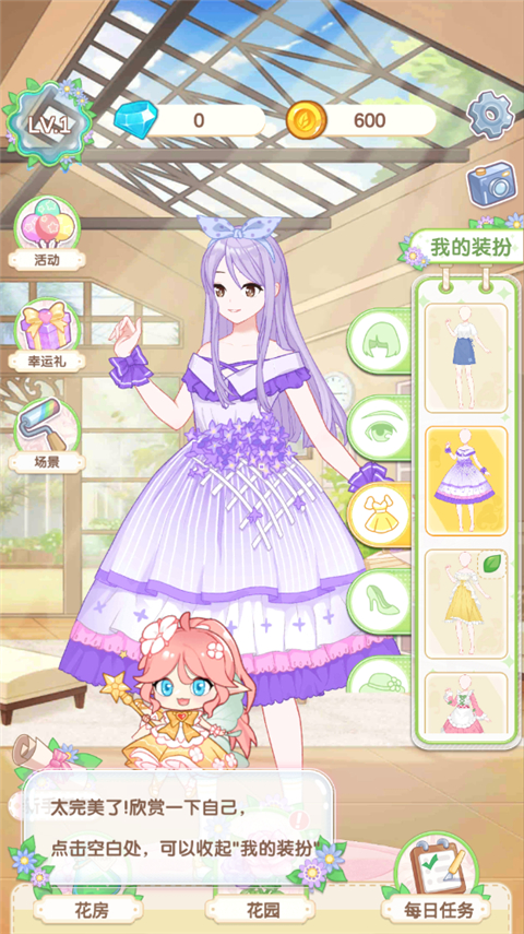 2、自由装扮花园搭配家具栅栏,设计独特景观完成趣味任务获得奖励。