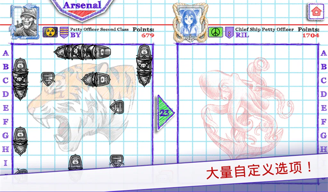 ◆海战使用方格记事本作为游戏背景,并使用圆珠笔风格进行美术创作,让游戏回归最原始的感觉。
