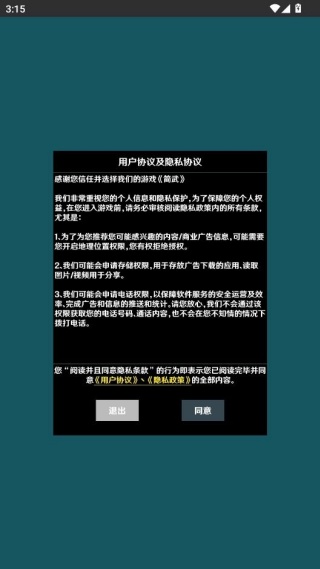 1.进入游戏前,你需要先同意相关的用户协议和隐私政策。