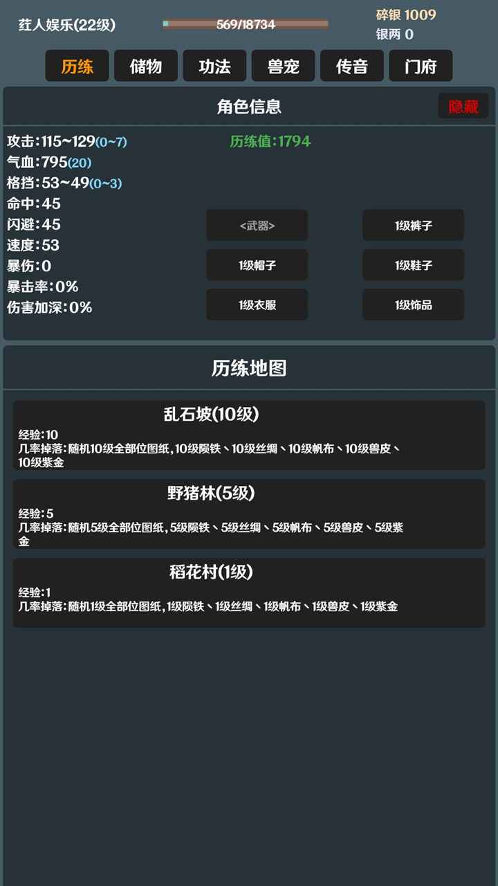 一款非常简单的文字武侠风格挂机游戏。游戏屏幕非常简单。所有内容都用文字表达。玩家可以通过冒险和战斗获得强化角色的资源。有丰富有趣的情节。角色的属性值越高,能力越强。你需要学习各种技能。