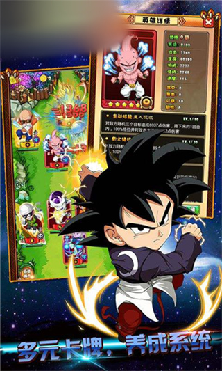 永远的七龙珠是一款玩起来相当精彩的卡牌策略游戏,采用精美的画面设计,经典还原了动漫中的场景画面,每一个英雄人物角色都历历在目,不同的角色有着不同的技能和属性,玩家需要合理的运用,组建一支强大的队伍!