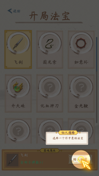 2、开局选择中意的法宝,进入神秘地区探索。