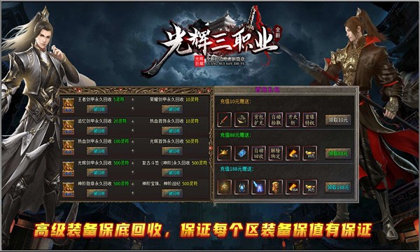 光辉复古三职业1.80版本上线啦,在这里三种职业都可以选择,很轻松的就能体验到游戏的乐趣,所有的武器装备都能白嫖,精致写实的传奇画面,带给玩家们最真实的游戏体验,喜欢玩传奇手游的小伙伴千万不要错过这款游戏啦!
