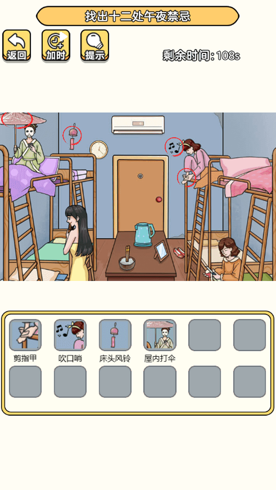 画风清新的休闲找茬游戏,游戏提供多个不同年代的画作,你需要根据要求找出画作当中不符合的不同之处,全部找出才能过关。