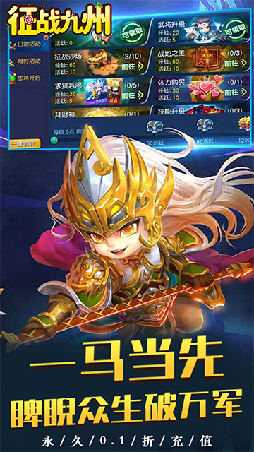 征战九州手游最新版是一款好玩的冒险游戏,游戏是好玩的三国模式,玩家可以选择角色和阵营,然后开启战斗,为了自己的国家而战斗,你的英雄之旅即将开启,喜欢小伙伴们快来007游戏网下载吧!