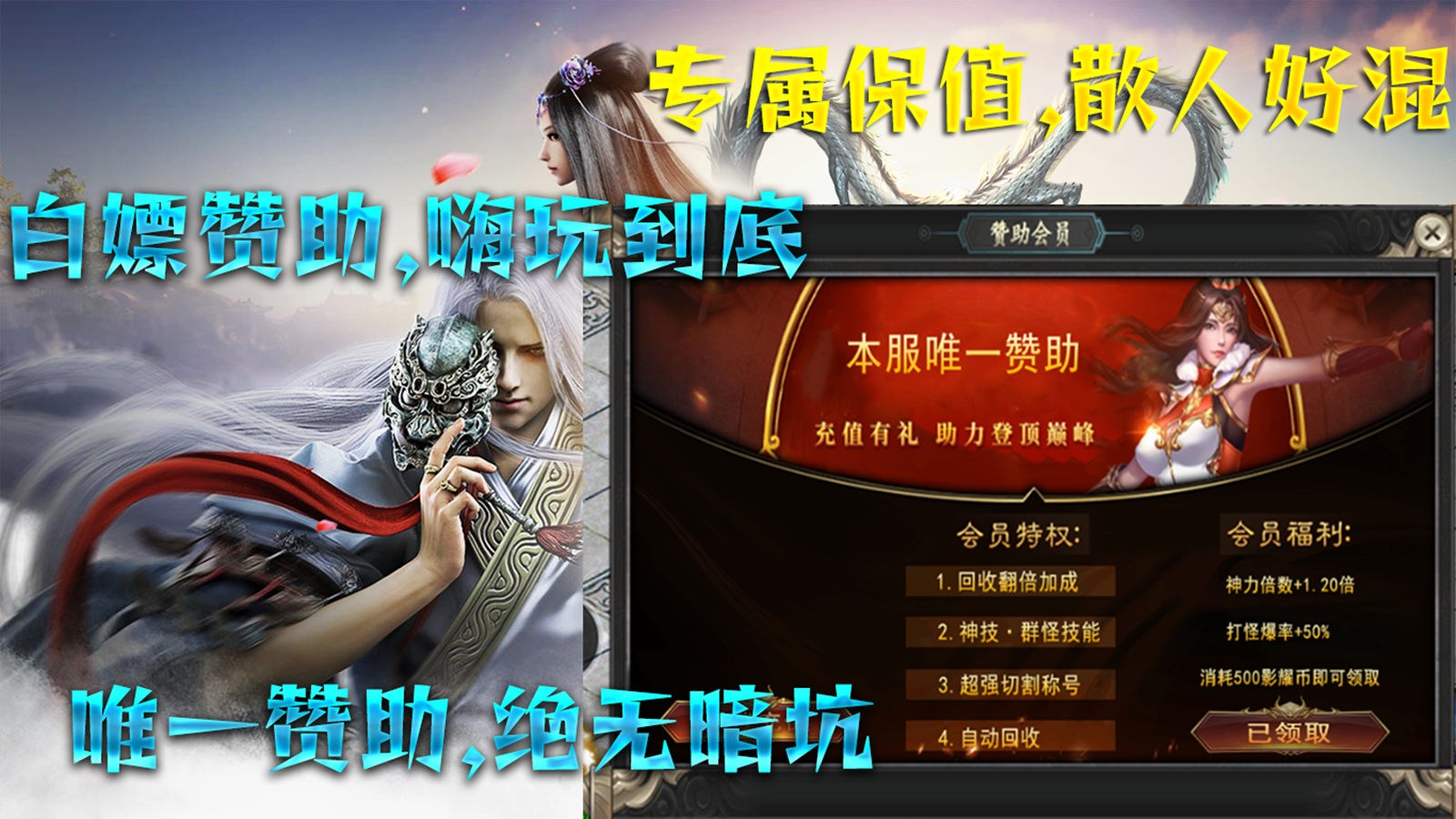 1、本服只有唯一赞助会员,绝对不暗坑。
