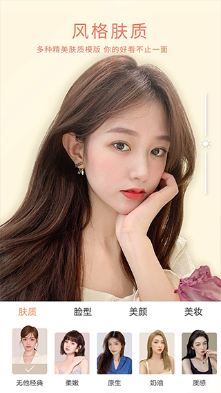 谁说好看的皮囊千篇一律?无他王牌肤质模版功能来袭。7种风格肤质任意挑选:经典、柔嫩、奶油、柔雾、原生,质感、男生。一键拥有高级脸,随心切换气质,你的好看不止一面!