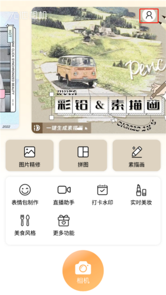 1、打开无他相机软件首页,点击右上角我的