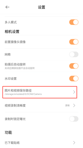 3、在设置中找到图片和视频保存路径按钮