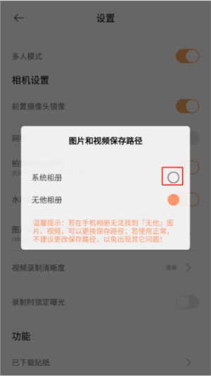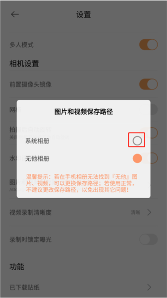 4、在图片和视频保存路径设置中选择系统相册,即可完成图片的导出
