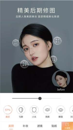 · 其余多达二十几种美颜功能对面部进行细致微调,让你的脸更加精 致好 看,同时又自然不假面。